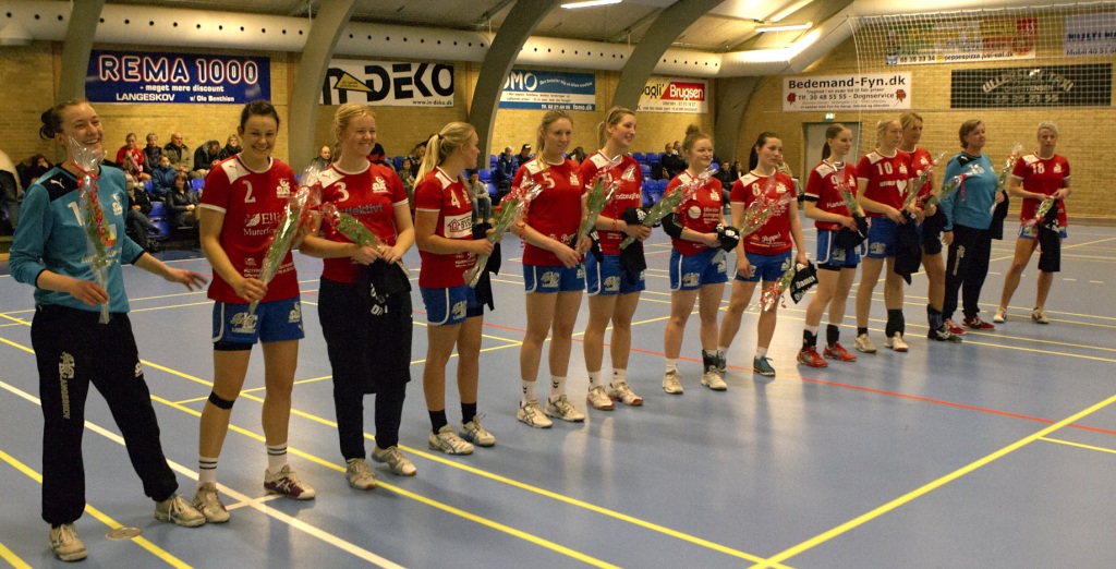 Inden kampen var herrerne mødt op med roser og kram til damerne, og efter en flot og ny suveræn sejr på ikke mindre end 33-14, der gik ud over Rørby-Værslev fra Vestsjælland, kunne oprykningen fejres på fortjent vis med pokal fra Fyns Håndbold Forbund og champagne.