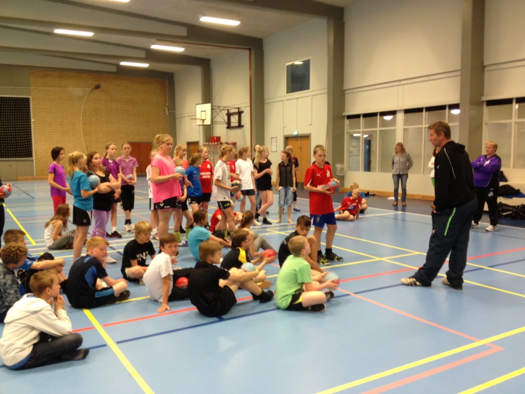 elever fra 4. klasserne klar til at blive undervist i håndbold i idrætstimerne.